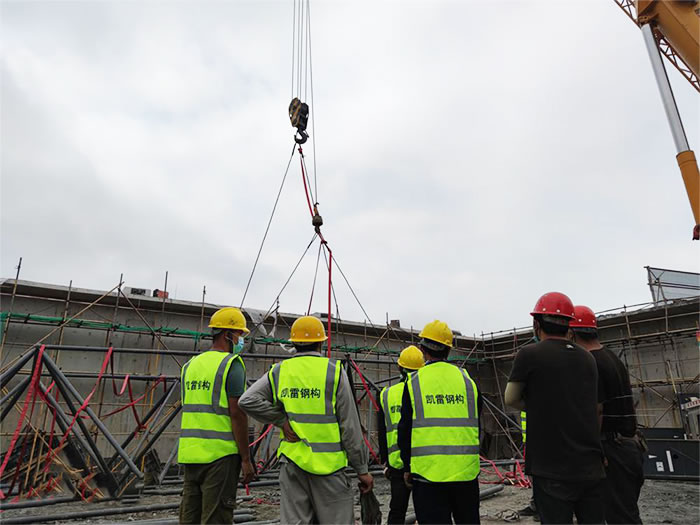 6.为确保.泊头加油站球形网架安装顺利,应有详细的泊头施工组织设计。网架安装必须保证结构的稳定性和不产生的附加变形。